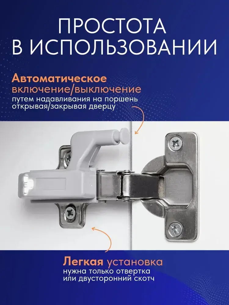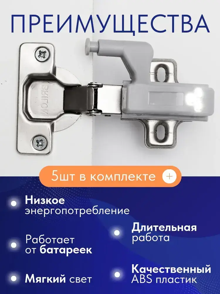 Светильник светодиодный на батарейках для шкафа 5 шт - LED подсветка в шкаф беспроводная на мебельную петлю