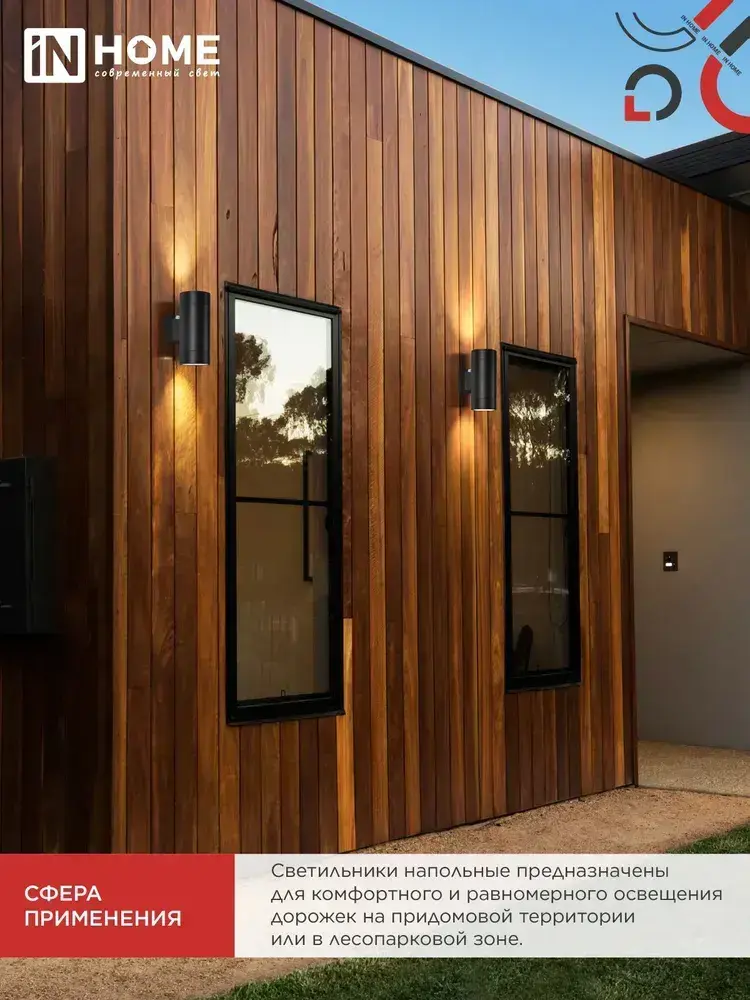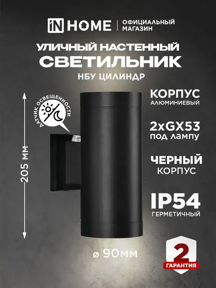Светильник уличный архитектурный фасадный настенный двусторонний c датчиком освещения НБУ ЦИЛИНДР-PC-2xGX53-BL алюм под 2хGX53 черный IP54 IN HOME
