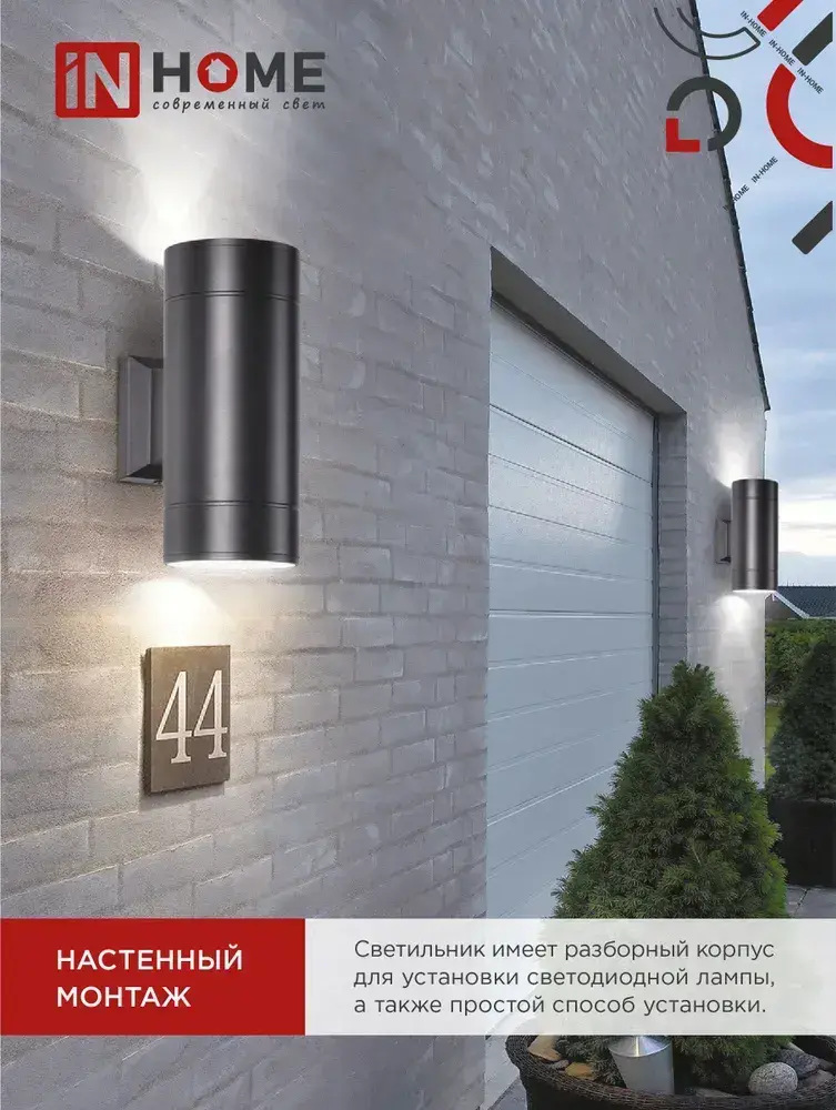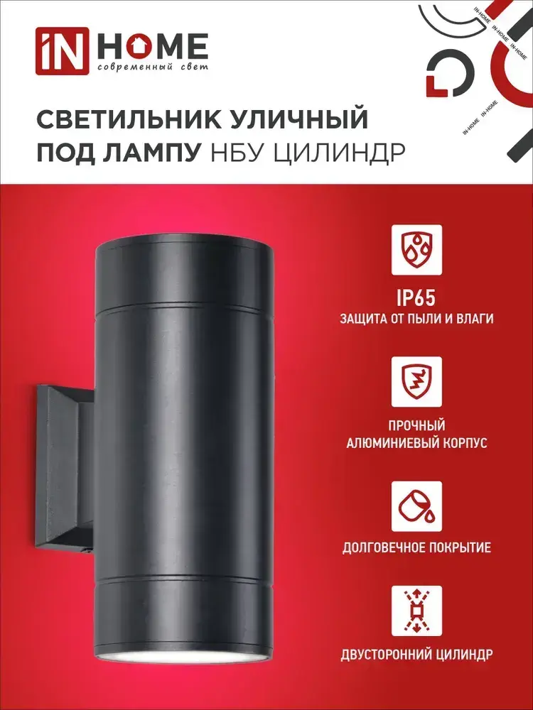 Светильник уличный настенный архитектурный фасадный двусторонний НБУ ЦИЛИНДР-2xGX53-BL алюминиевый под лампу 2хGX53 230B черный IP65 IN HOME