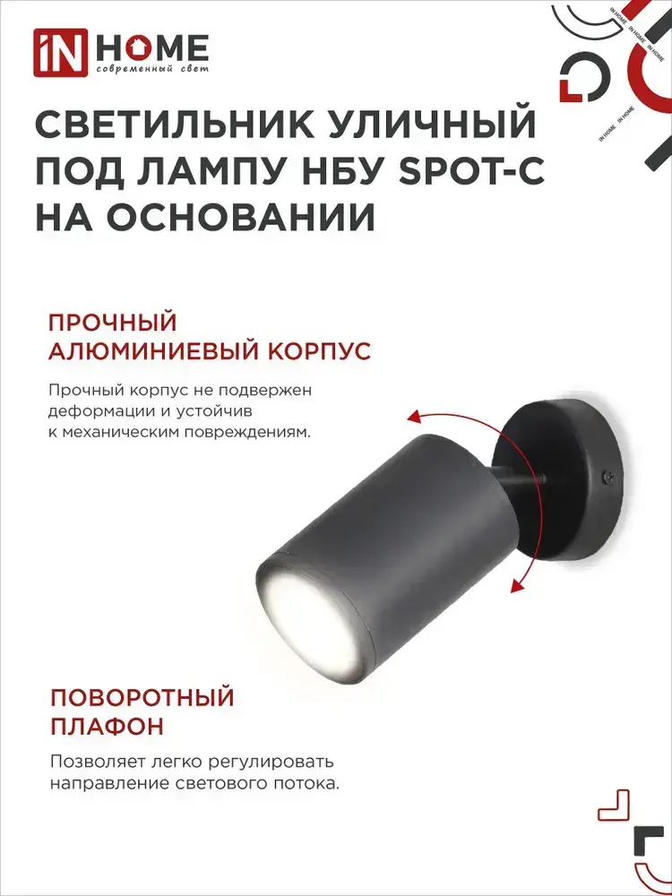 Светильник уличный настенный фасадный НБУ SPOT-CB алюм под GU10 230B на основании черный IP65 IN HOME