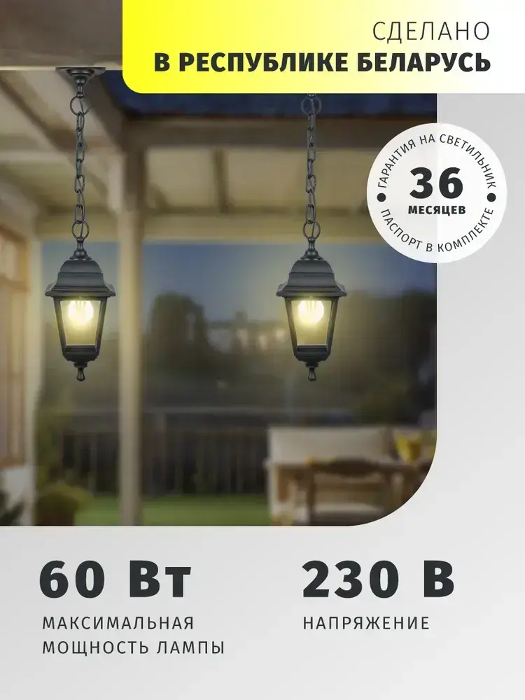 Светильник уличный Navigator 80 478, 4 грани, цоколь E27, IP44, подвесной, черный