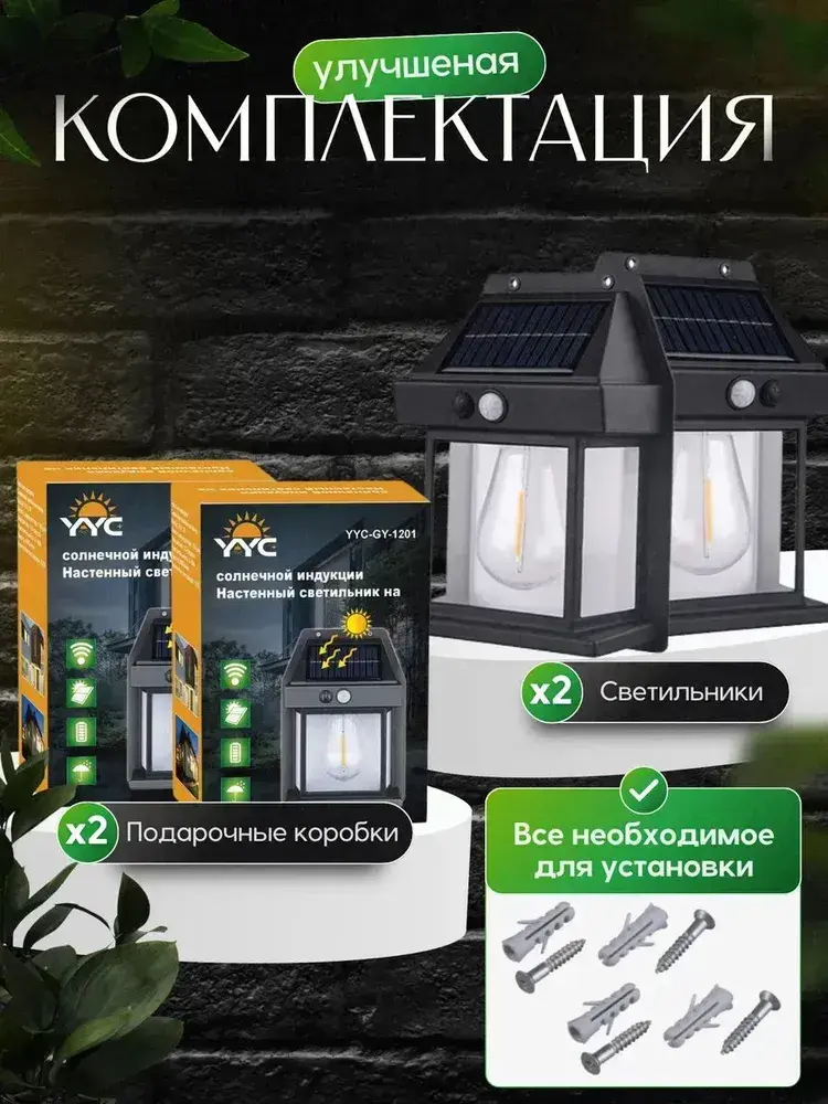 Светильник уличный с датчиком движения на солнечной батарее 2 шт