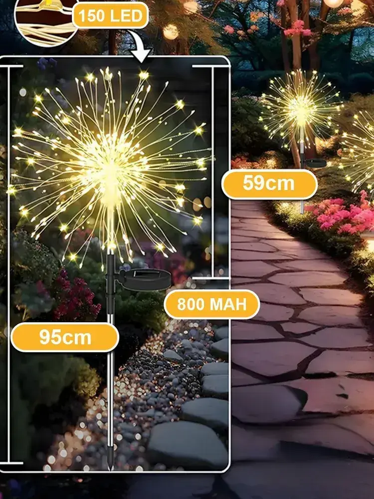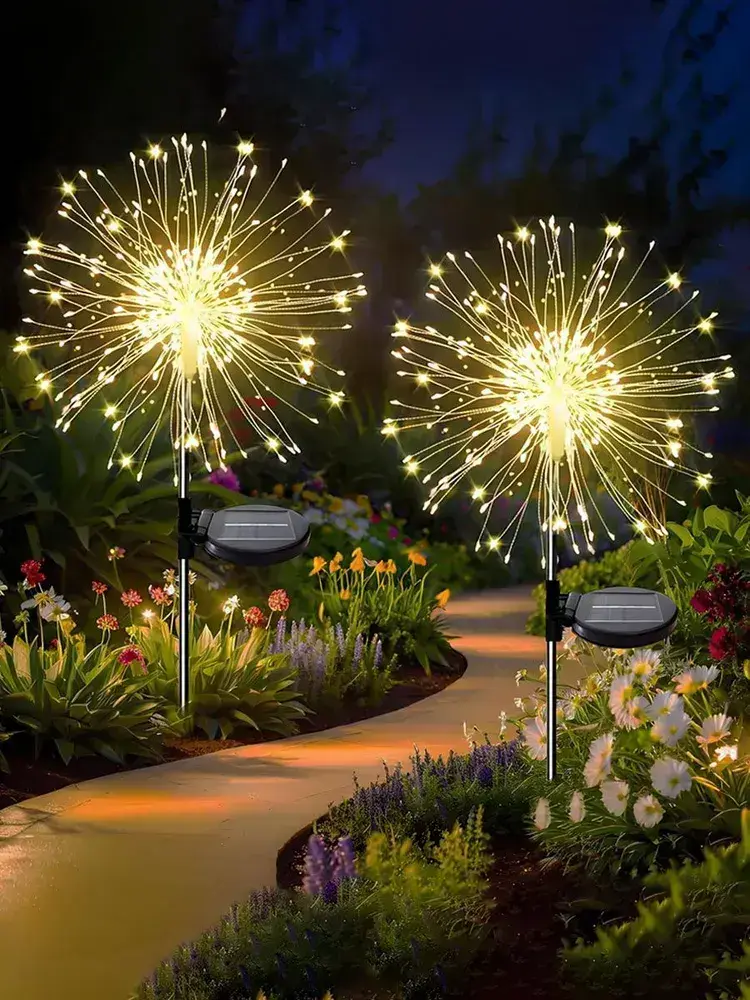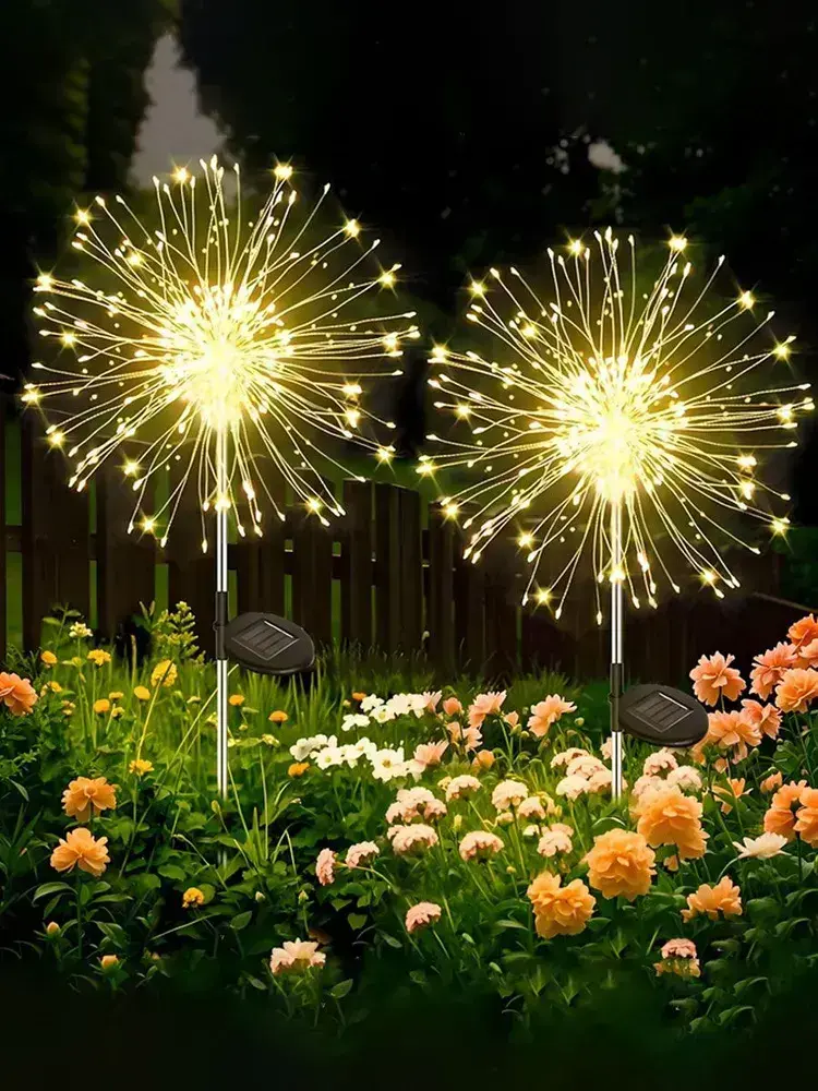 Светильник уличный садовый декор "Фейерверк" на солнечной батарее, 150 ламп, теплый свет, 2шт