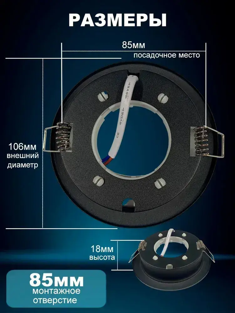 Светильник встраиваемый металл, под цоколь GX53, черный матовый, для натяжного и гипсокартонного потолка/ комплект 10шт