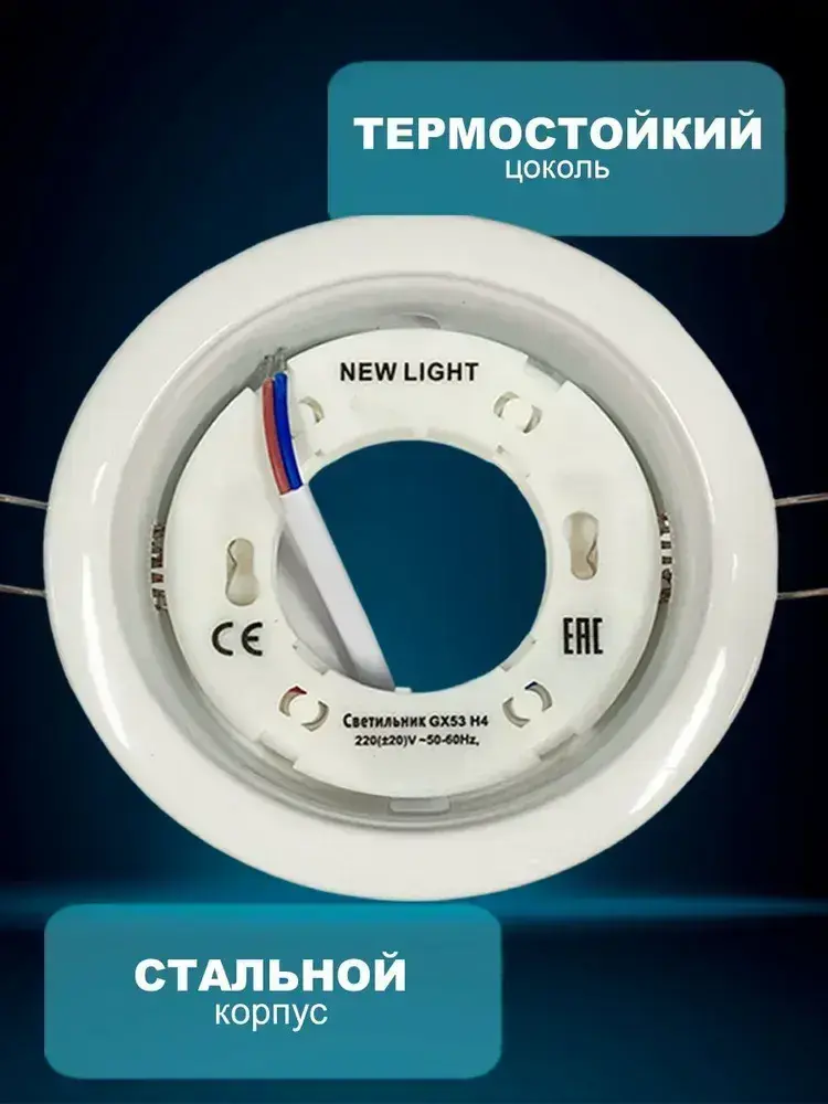 Светильник встраиваемый металл, цоколь GX53, белый, для натяжного и гипсокартонного потолка, комплект 10шт.
