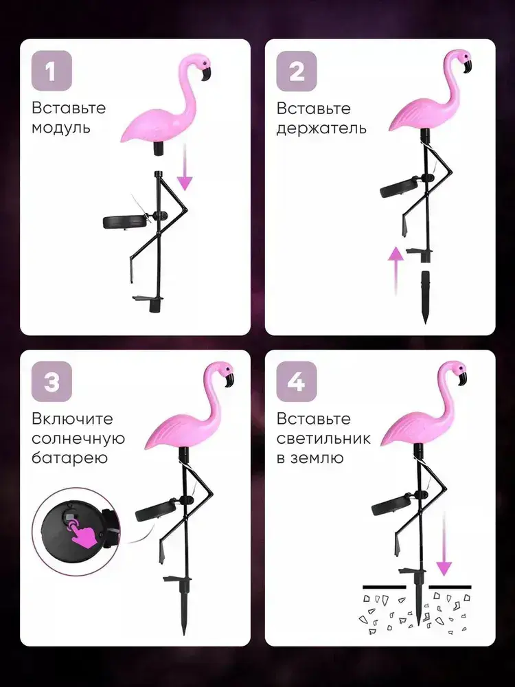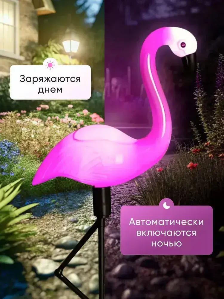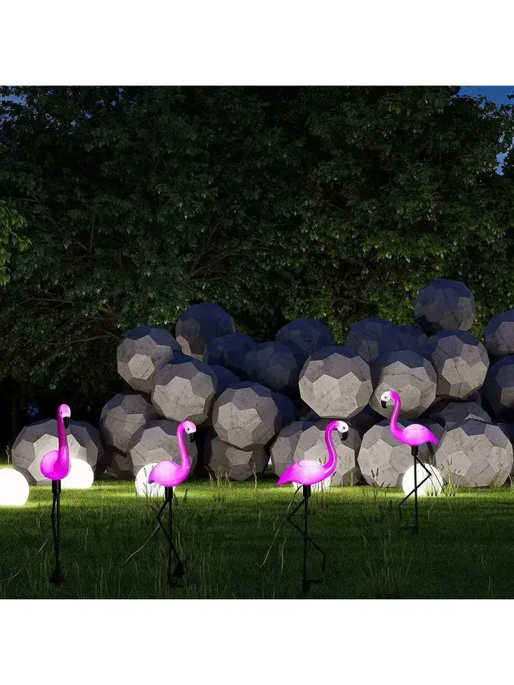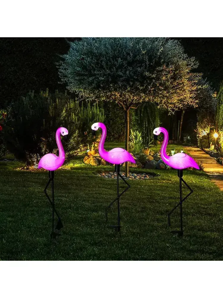 Светильники садовые уличные на солнечной батарее, фламинго, материал изделия abs-пластик, набор из 3 шт, розовый и черный