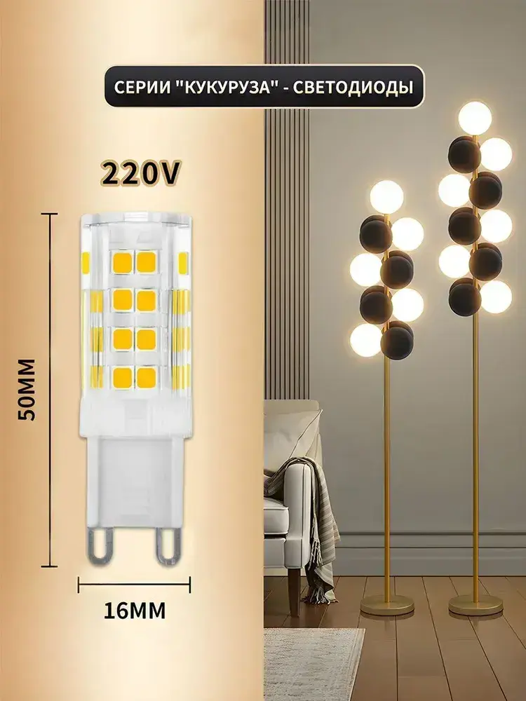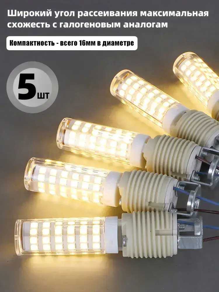 Светодиодная лампа G9-SMD 5 Вт 220В, 3000K теплый свет, 5W,220V, набор 5 шт