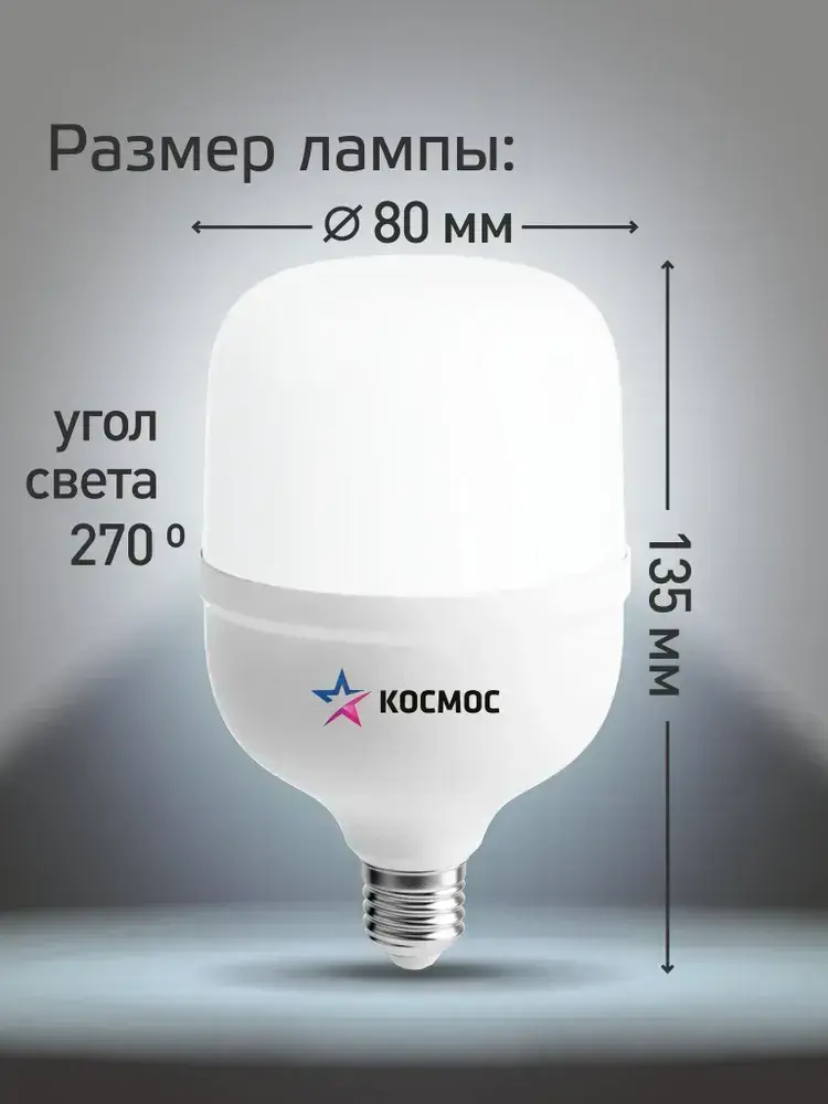 Светодиодная лампа КОСМОС HW LED Т80 30Вт E27, холодный дневной свет, аналог лампы 200Вт.