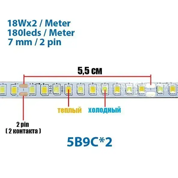 светодиодная лента для люстры 5м двух цветная / два контакта