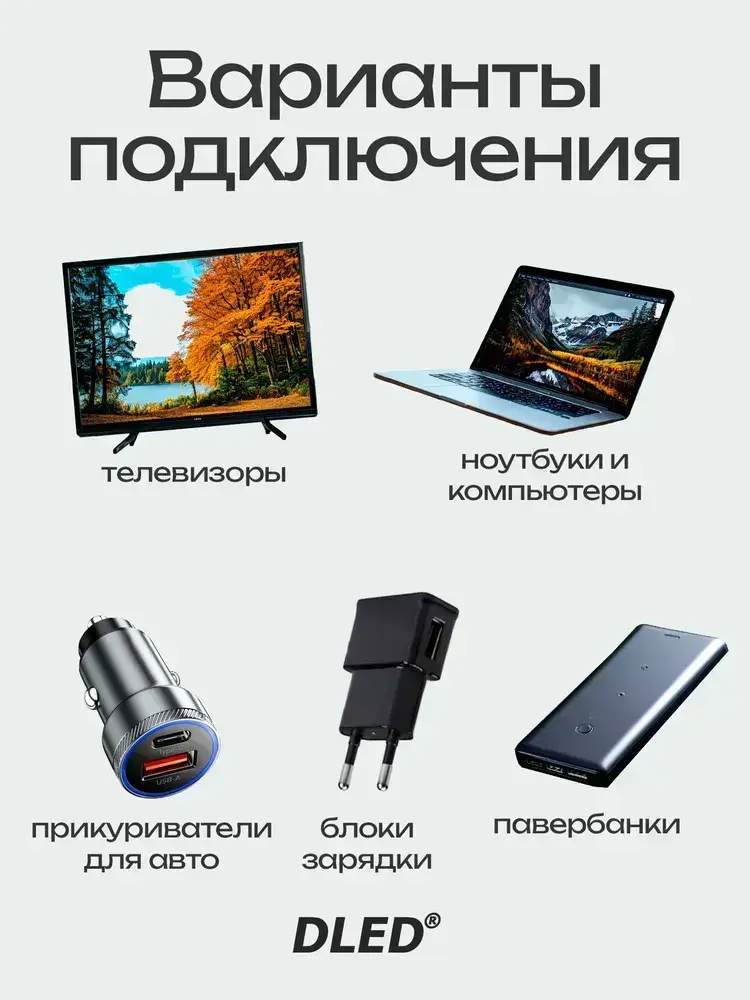 Светодиодная лента от DLED SMD 2835 (60LED/метр) с USB разъемом белая 1 метр