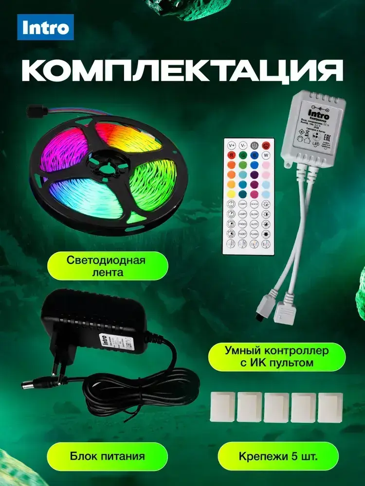 Светодиодная лента RGB 24 В ЭРА 5050Kit умная с пультом и блоком питания, 15 м, 12 Вт