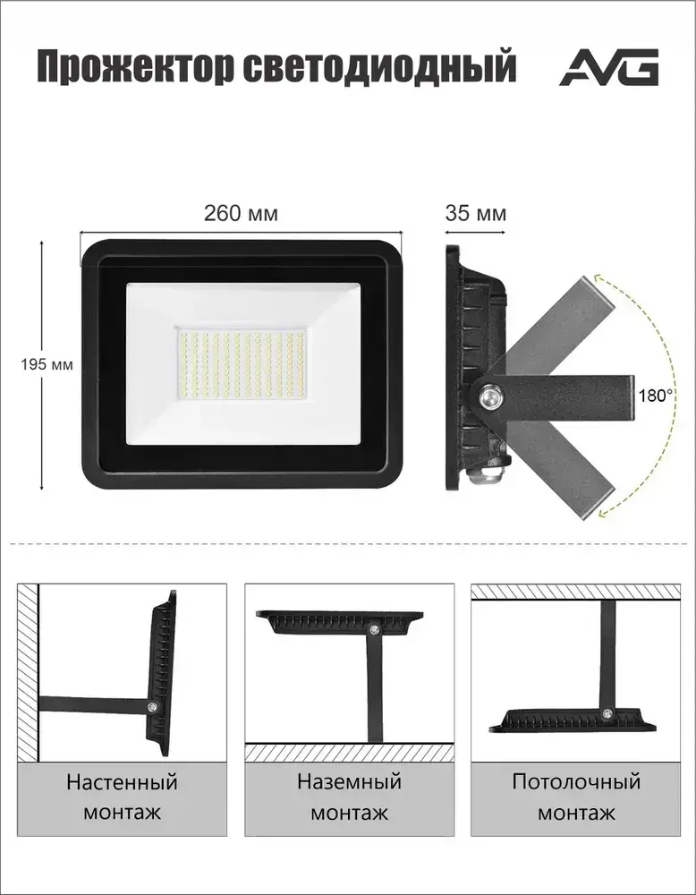 Светодиодный прожектор уличный AVG серия 6 SDO-6 200Вт