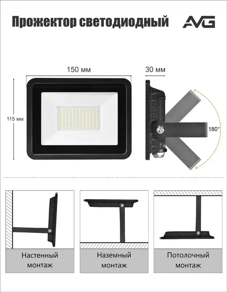 Светодиодный прожектор уличный AVG серия 6 SDO-6 50Вт