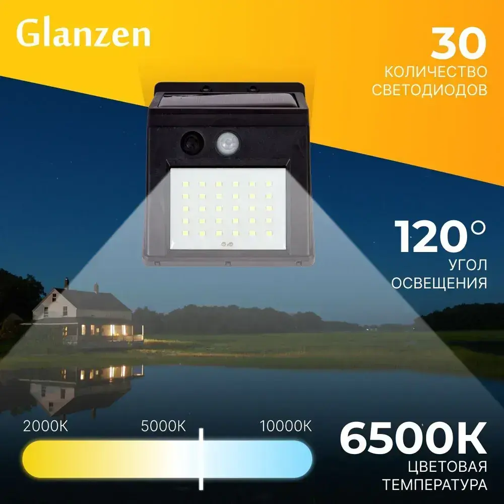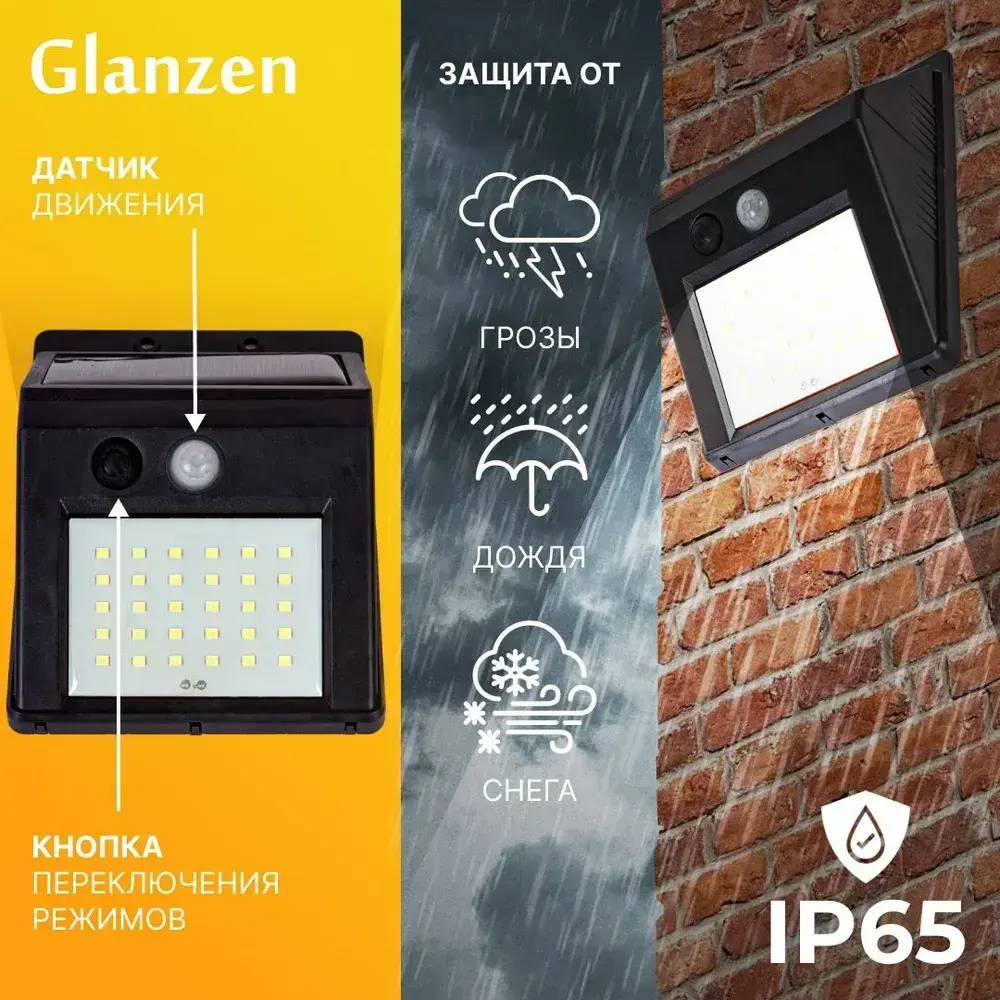 Светодиодный уличный прожектор на солнечных батареях и датчиком движения GLANZEN FAD-0003-4-solar