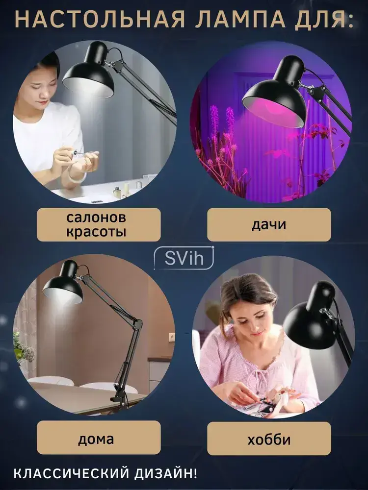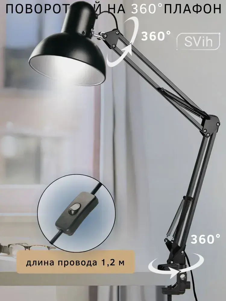 Svih Лампа настольная для маникюра на струбцине, для школьника светильник для дома освещение в спальню, детскую, прихожую