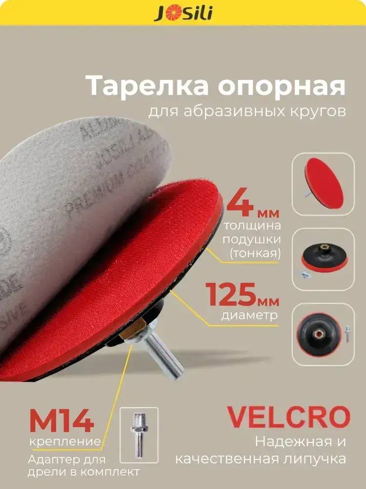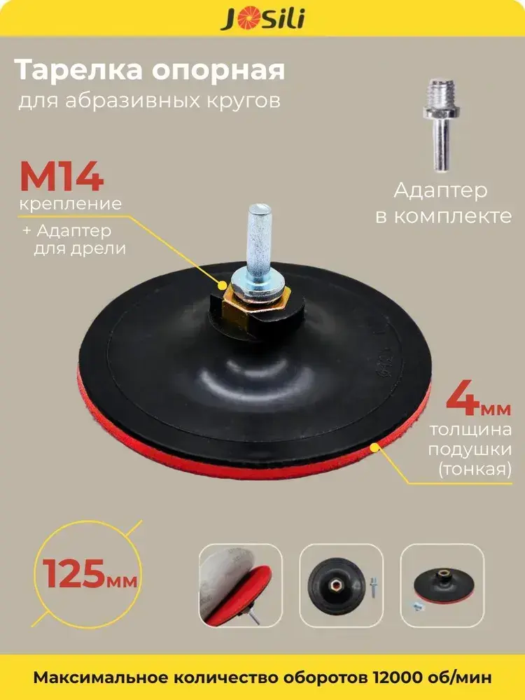 Тарелка опорная 125 мм насадка для дрели и УШМ с липучкой и адаптером (ТОНКАЯ)