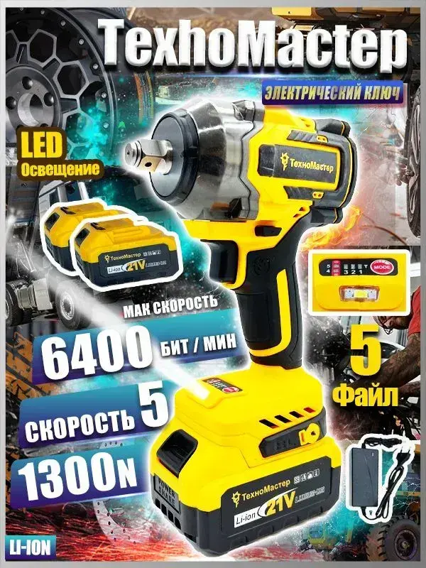 ТехноМастер TooLs Подходит для аккумулятора 21 В, бесщеточного ударного гайковерта 1300 Нм,Аккумулятор х 2