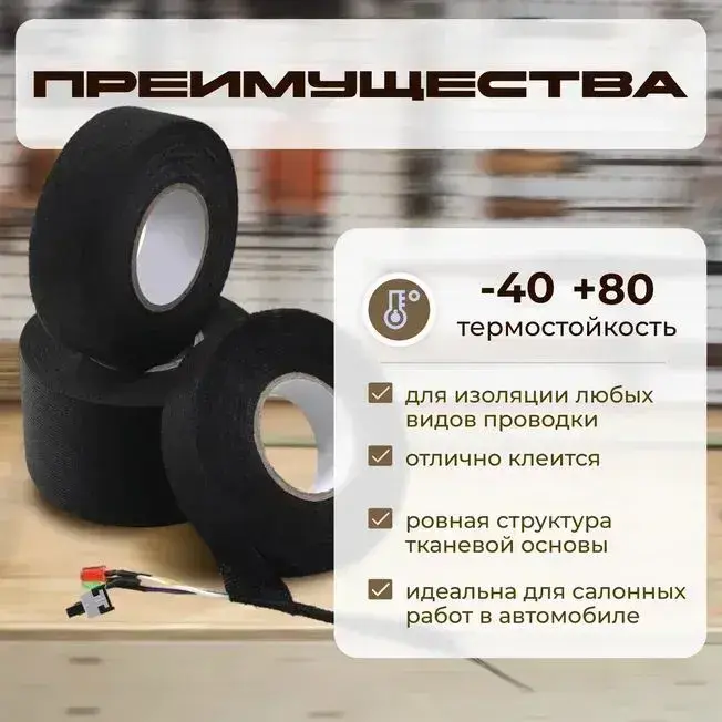 Текстильная лента для проводов в автомобиле 15 метров