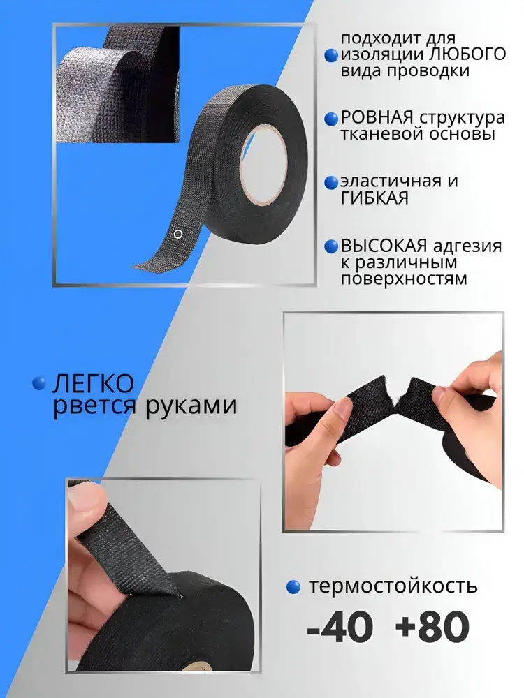 Текстильная лента для проводов в автомобиле 15 метров 19мм
