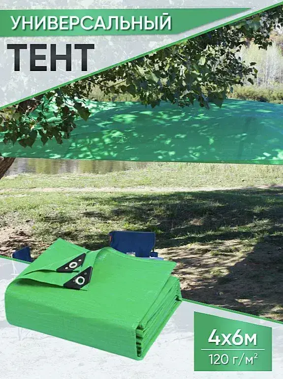 Тент укрывной усиленный 4х6м., 120г/м2 с люверсами, полог универсальный (туристический, строительный, садовый) Миротент, Россия