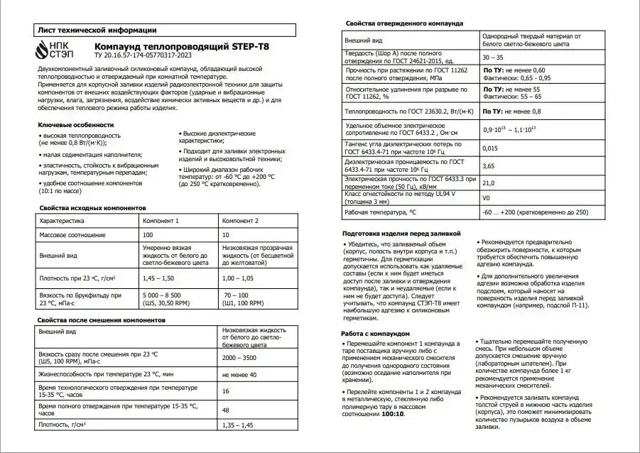 Теплопроводный силиконовый заливочный компаунд СТЭП-Т8, 1 кг