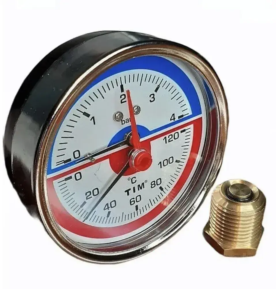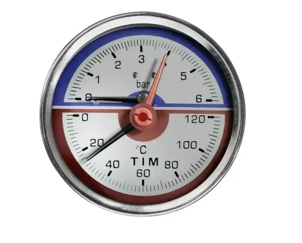Термо-манометр аксиального подключения 1/2" - 6 бар, 80 мм