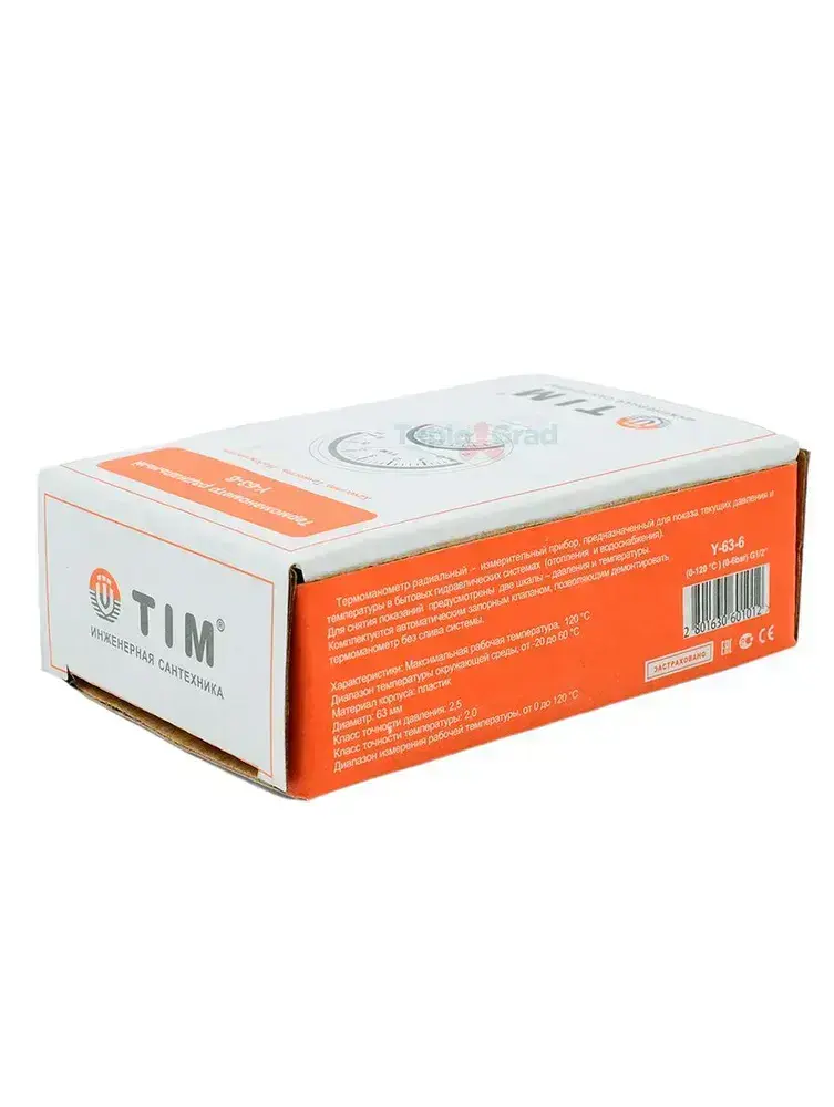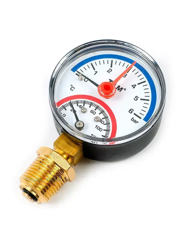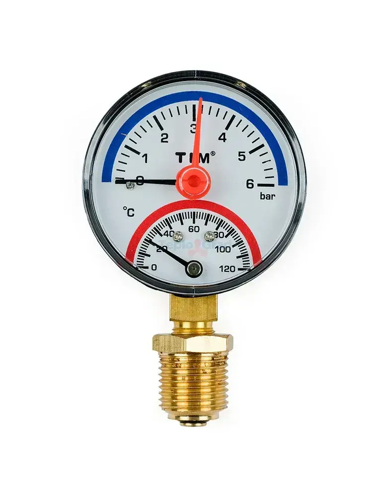Термоманометр радиальный TIM, корпус 63 мм, диапазон 0-6 бар, подключение 1/2 Y-63-6
