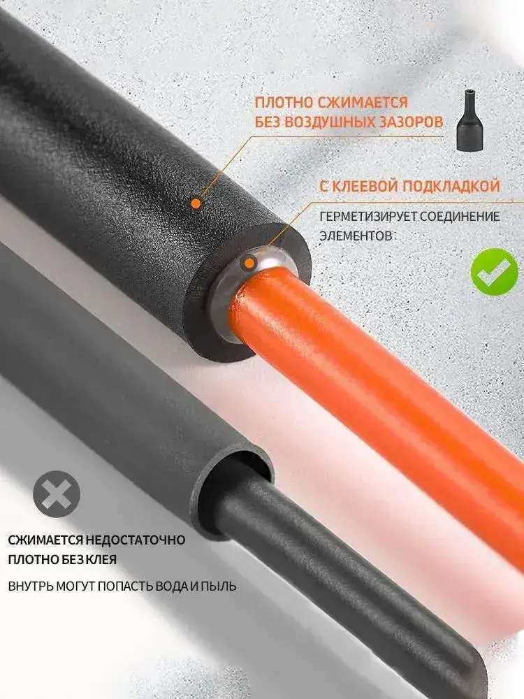 Термоусадка для проводов, черная 6.4/2.13 мм, термоусадочная трубка с клеевым слоем ТТК (3:1) для электрики и для рыбалки,10 М