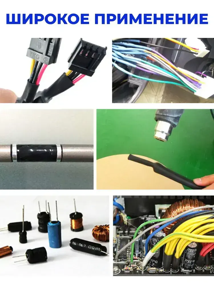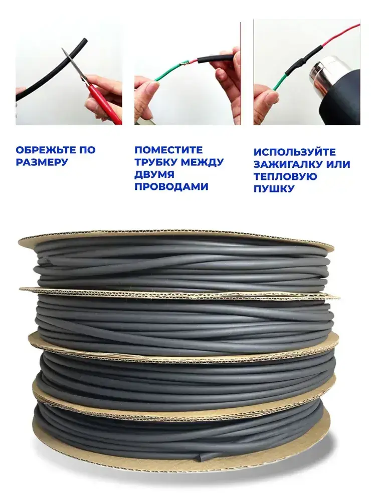 Термоусадка для проводов с клеевым слоем 3 метра черная, 3,2мм. Термоусадочная трубка для проводов. Диаметр 3,2.
