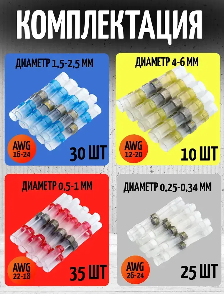 Термоусадка для проводов с клеевым слоем и припоем 100 шт; набор термоусадочных трубок