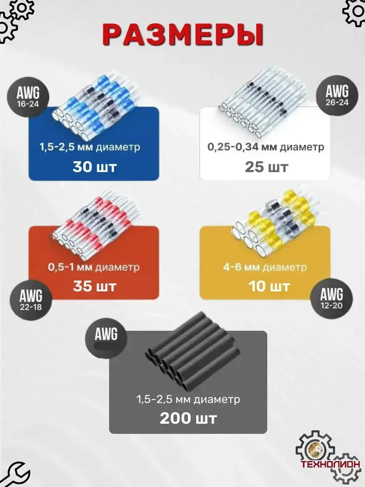 Термоусадка для проводов с клеевым слоем и припоем, Термоусадка с припоем, набор 300 штук