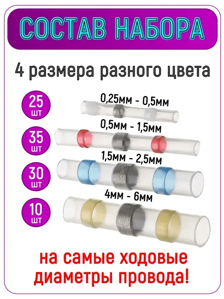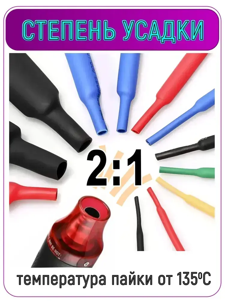 Термоусадка для проводов с припоем и клеевым слоем 100 шт. Набор термоусадочных трубок