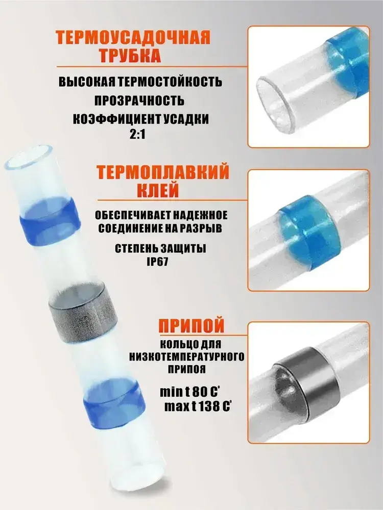 Термоусадка для проводов с припоем, внутренний диаметр 4,5мм, 20 шт