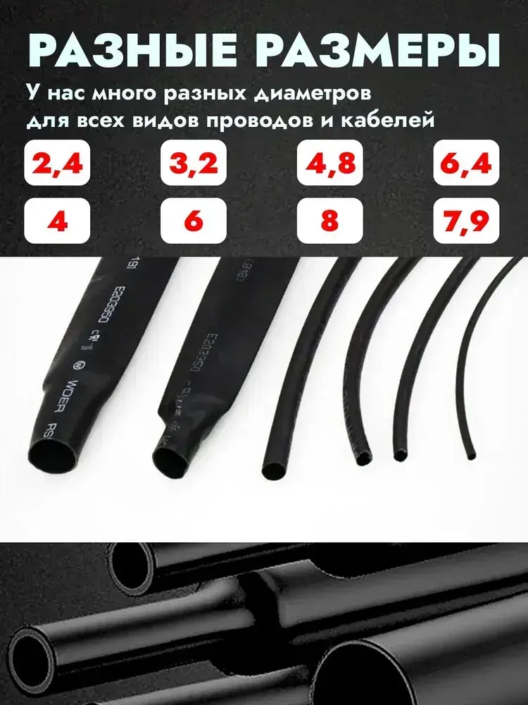 Термоусадка водонепроницаемая для проводов с клеевым слоем 3 метра черная, усадка 4:1. Термоусадочная трубка для проводов. Диаметр 4,6,8мм