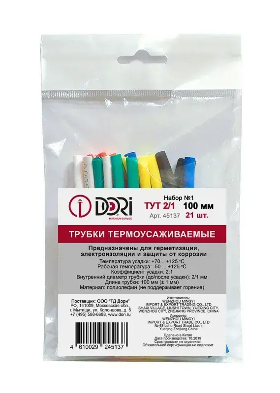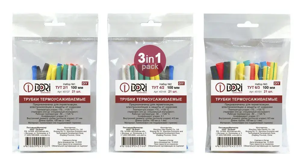 Термоусаживаемая трубка/Термоусадка DORI (63 шт., 100 мм, 7 цветов, набор 3in1)