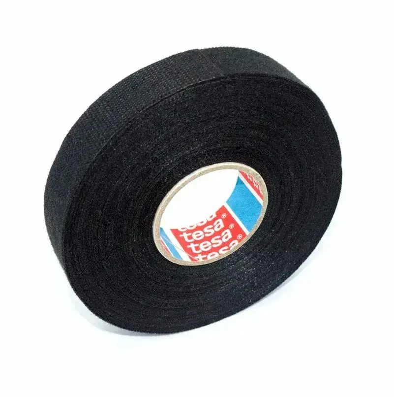 tesa Изолента 51608, 1 шт. шумоизоляция автомобильная салонная тканевая флисовая матерчатая черная для жгутования, "антискрип", 19 мм 25 м 230 мкм