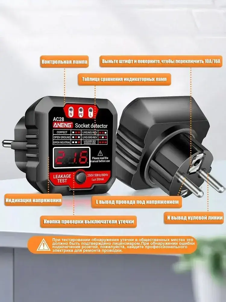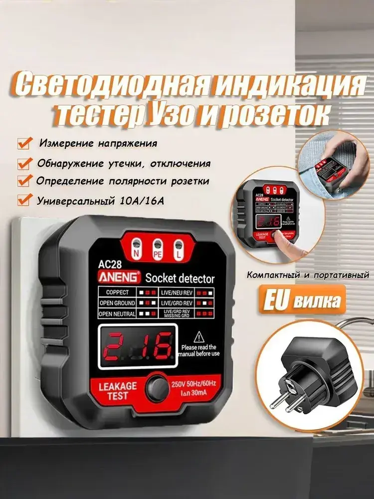 Тестер розеток и УЗО Aneng AC28, выявление неисправности подключения розеток.