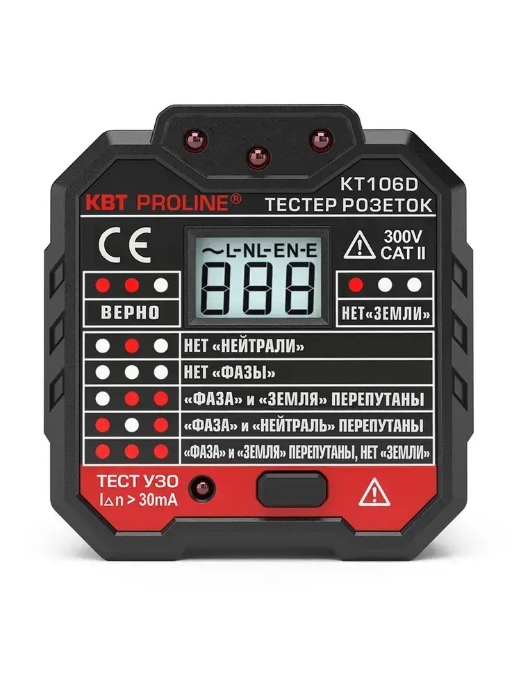 Тестер розеток и УЗО КВТ Proline KT 106D, 79136
