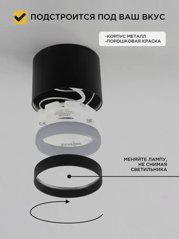 Точечные светильники потолочные GX53 черный, накладной светодиодный спот