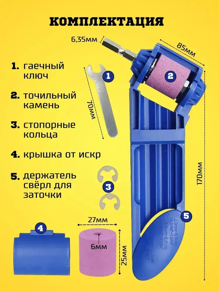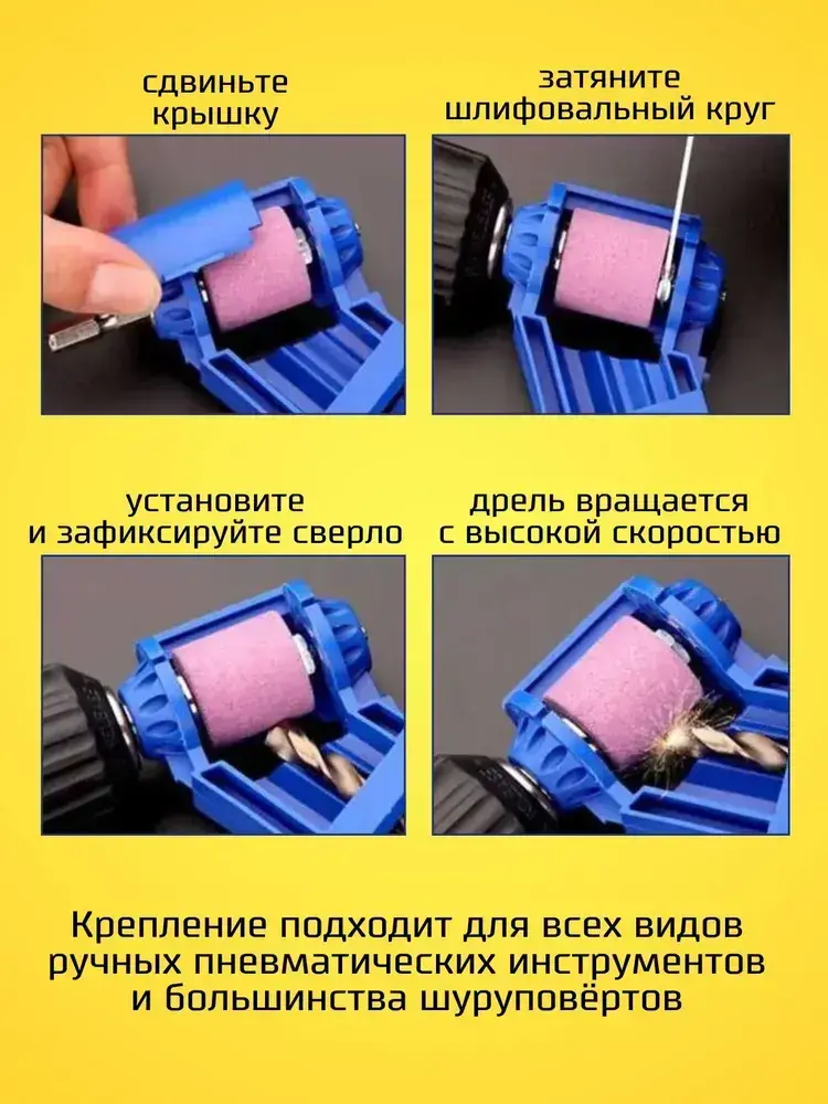 Точилка для сверл на шуруповерт, на дрель, универсальная, заточка для сверл, насадка на электроинструмент