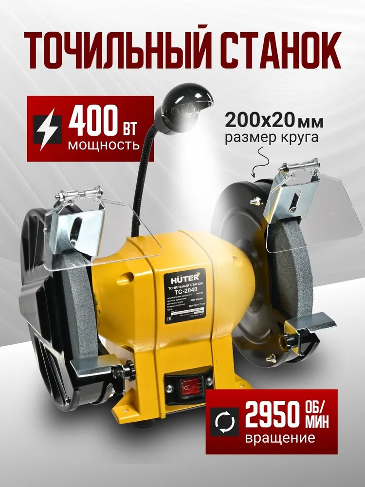 Точильный станок электрический Huter 2040, 400Вт, 2 круга, подсветка
