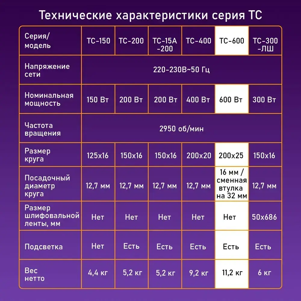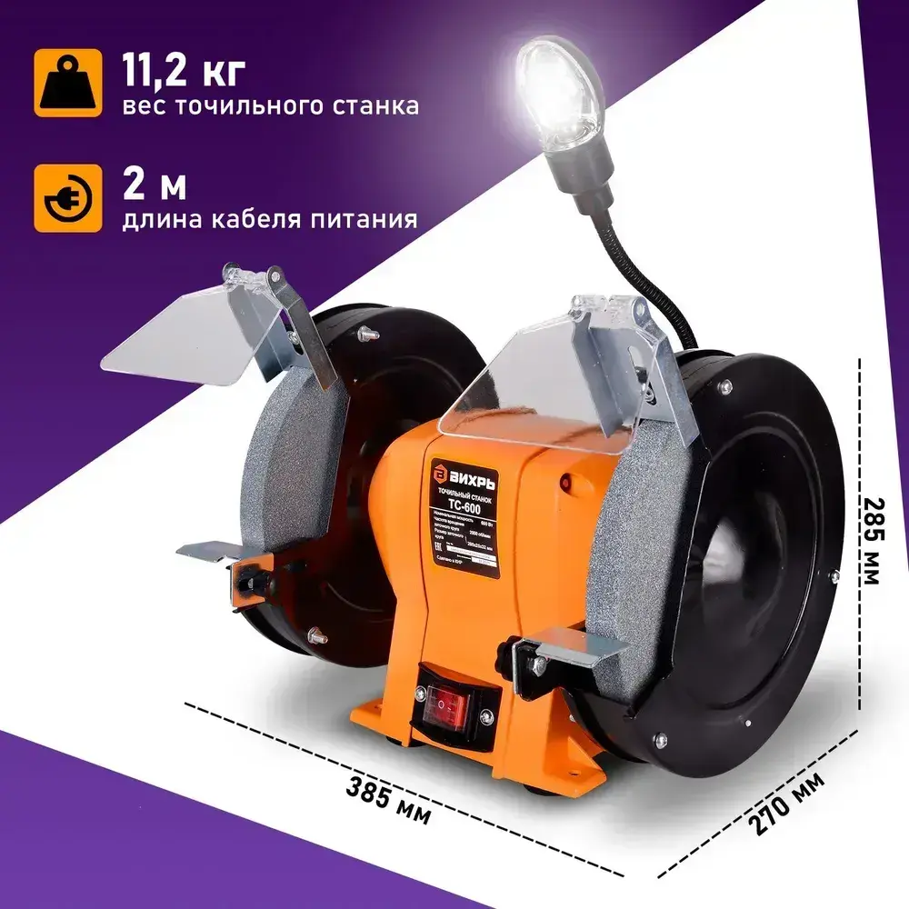 Точильный станок электрический ТС-600 Вихрь (600 Вт, круг 200 мм) - // наждак электрический настольный