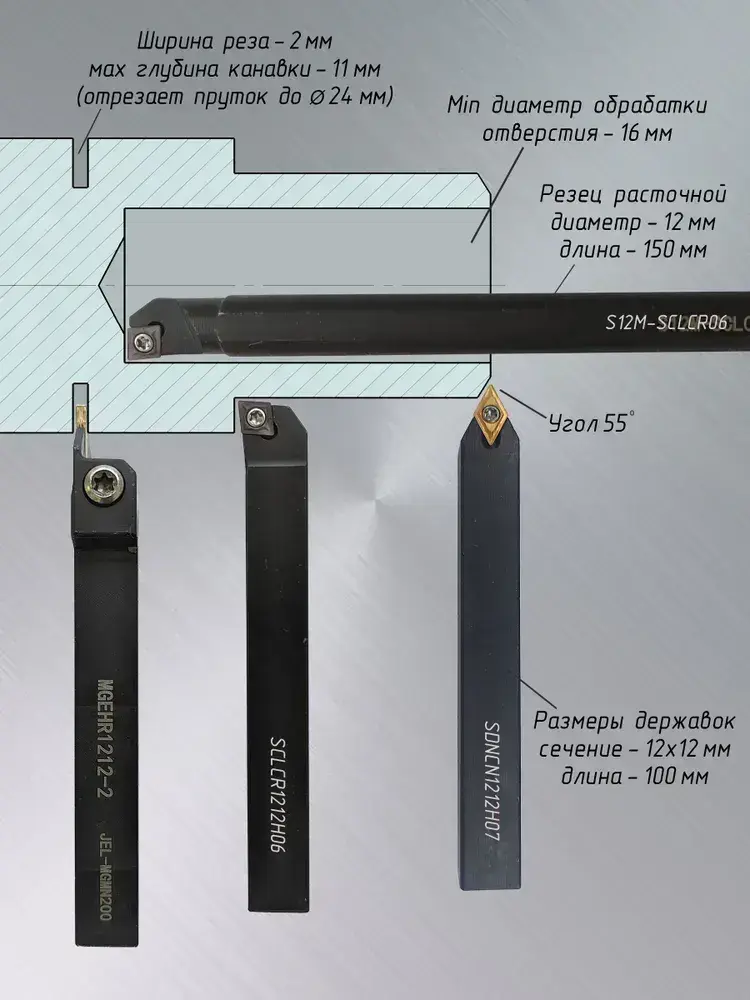 Токарные резцы по металлу 12х12 / Набор из 7 резцов