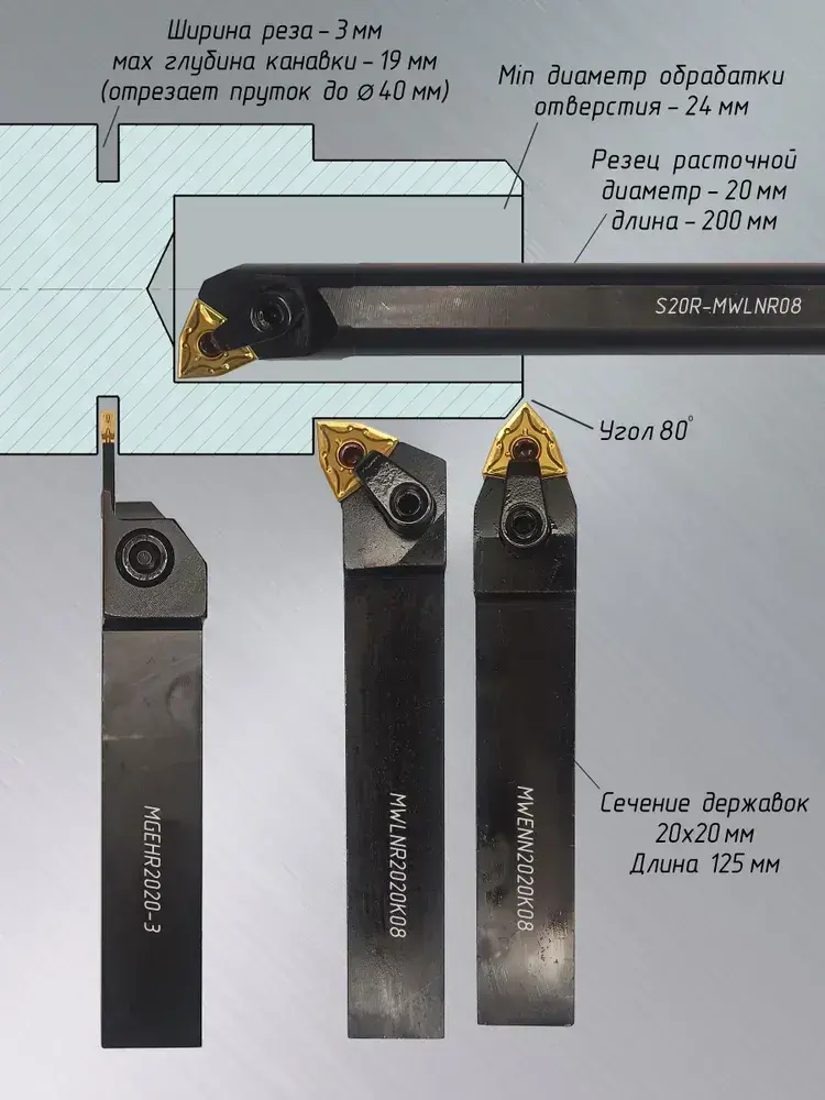 Токарные резцы по металлу 20х20 со сменными пластинами