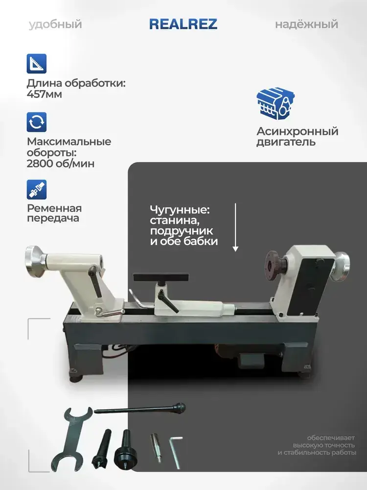 Токарный станок по дереву REALREZ R-1218, 550 Вт, 220 В