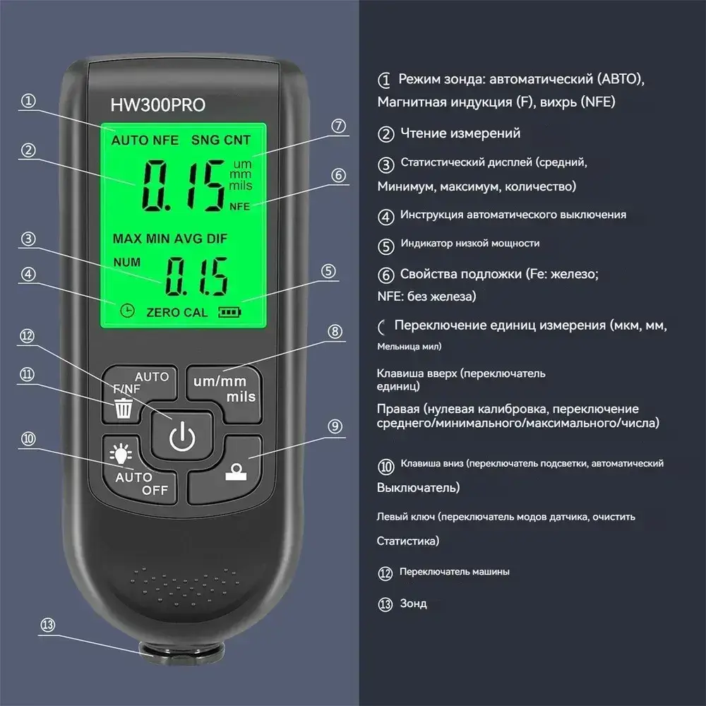 Толлометр покрытия HW-300PRO черный