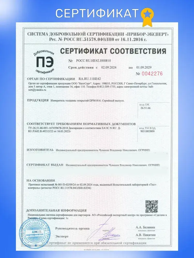 Толщиномер автомобильный CARSYS DPM-816 COMBO комплект с двумя чехлами, с определением цинка