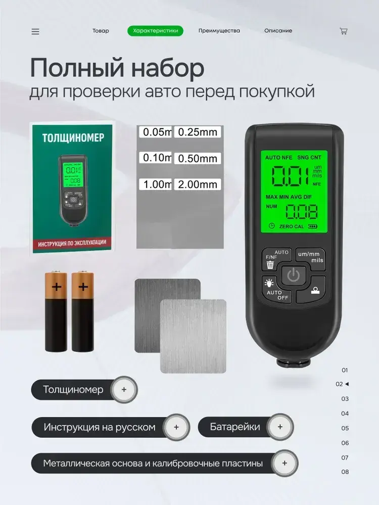 Толщиномер автомобильный / Измеритель ЛКП электронный, магнитный. Автоподбор.