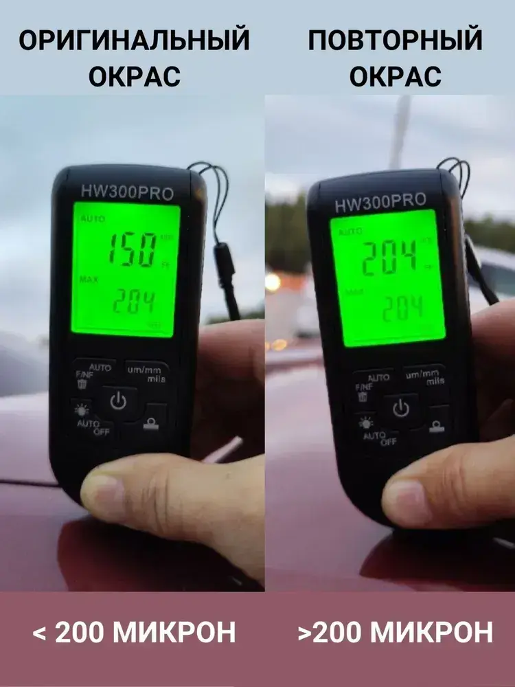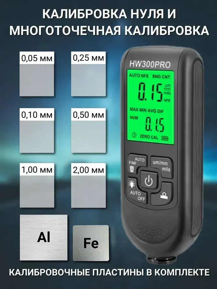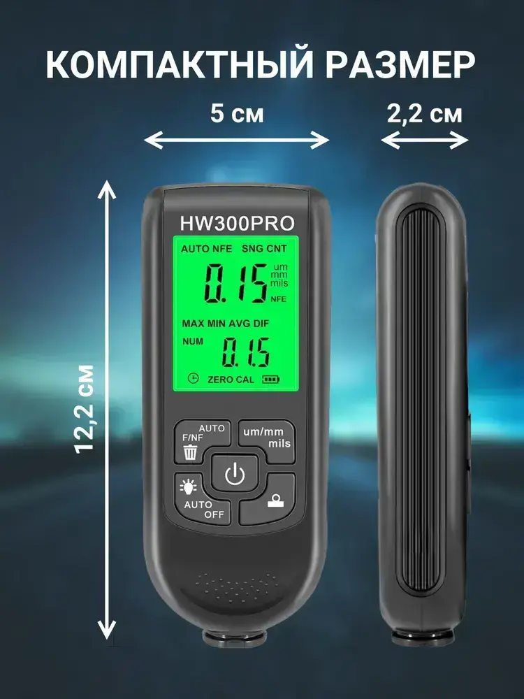 Толщиномер автомобильный лакокрасочных покрытий для автоподбора ЛКП магнитный HW300PRO