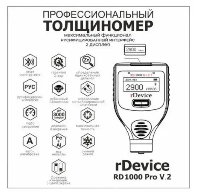 Толщиномер rDevice RD-1000 Pro V2 (два экрана)